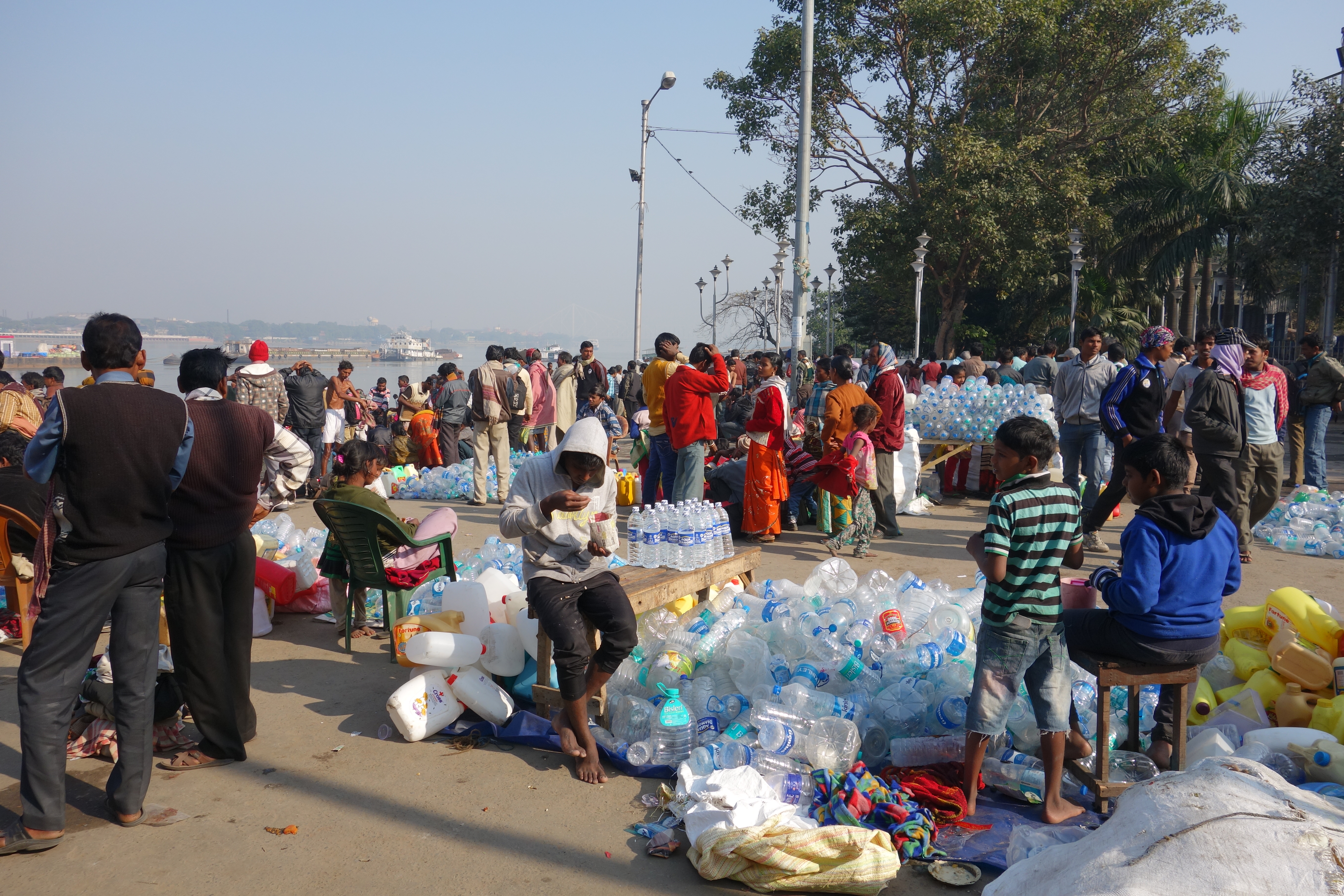 As someone who gets very cold hands, tank tops are a bit of a puzzle to me. Why have a jumper without sleeves, especially in India where most men usually wrap a shawl over themselves anyway? Why not just have sleeves? Surely that would be simpler? But on the slopes of the ghat that morning, tank tops in various shades of brown and grey, and sandals with socks were the fashion must-haves. Barefooted boys, hair cropped as haphazardly as their trousers lumbered by, sacks laden with empty plastic bottles. These accidental eco-warriors looked tiny in comparison to their loads but twittered happily between themselves. Someone was selling egg rolls, the Bengali bacon sandwich. They smelled divine.